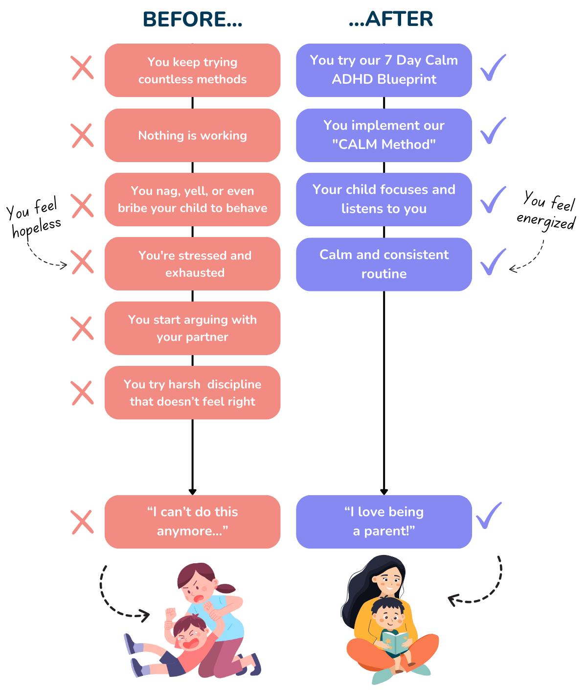 You'll have more energy for yourself and your relationships. ADHD parenting stress won't dominate your life anymore.